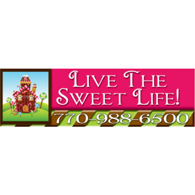 The Candy Land banner is 3' x 10' and digital print on vinyl. You can customize with your phone number or special saying.