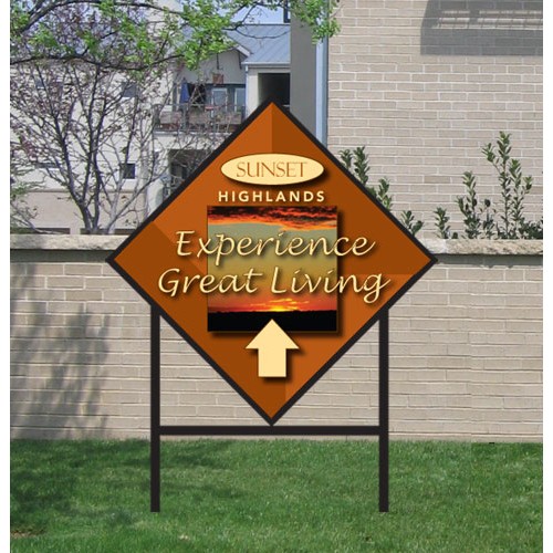 24" x 24" diamond shape coroplast sign with digital print graphics. Please tell us as much as you ca..