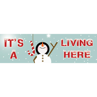 The Snowman Joy Banner is part of a campaign, but you can have your custom message. The banner is 3' x 10' digital print on vinyl.